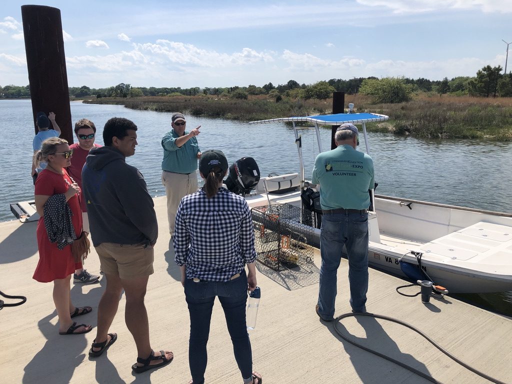 Back safely on the ground, the team headed to the Chesapeake Bay Foundation’s Brock Center to meet with Chris Moore, senior regional ecosystem scientist, to learn about the delicate ecosystem on the Lynnhaven River. Led on a guided boat tour by Moore and Lynnhaven River Now, VCN staff explored oyster reefs, crab traps, and tried their hand at oyster tonging.
