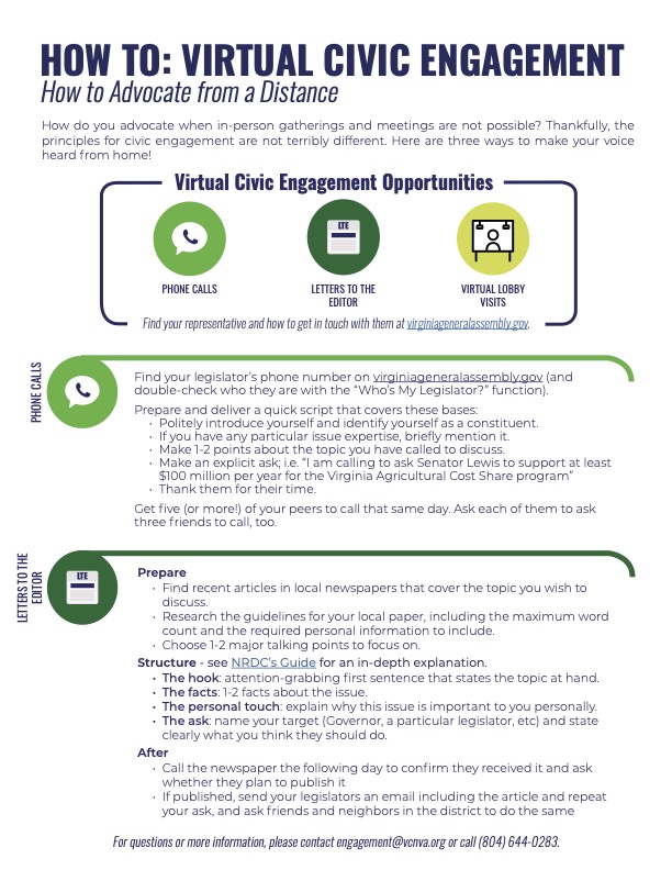 In our “Trail Guide to the General Assembly” series, we provided you with background on how the General Assembly works, how you can engage with legislators, and the environmental issues we expect to see in the upcoming General Assembly session. Click below to download our advocacy action guides or watch our recorded webinars: